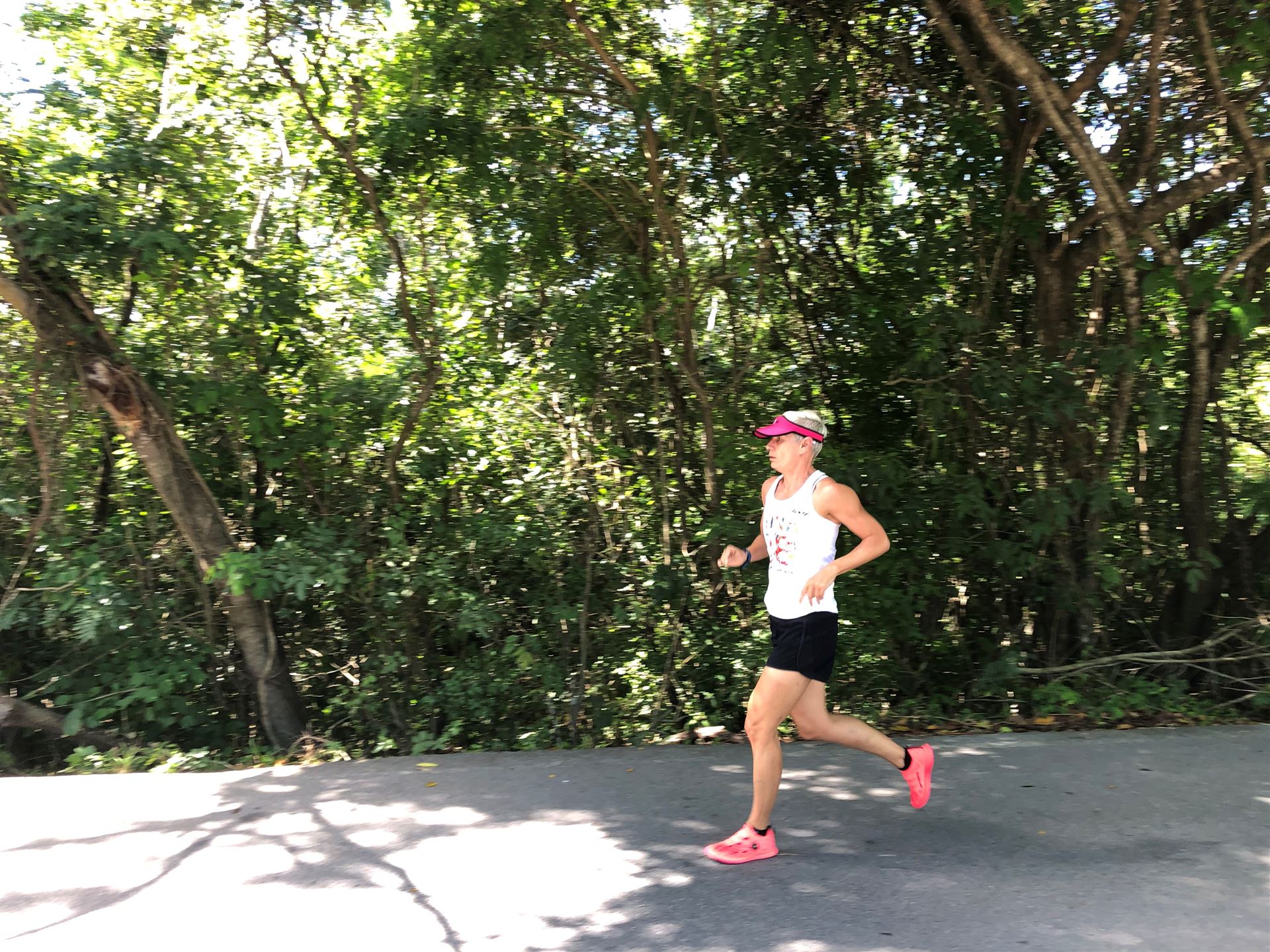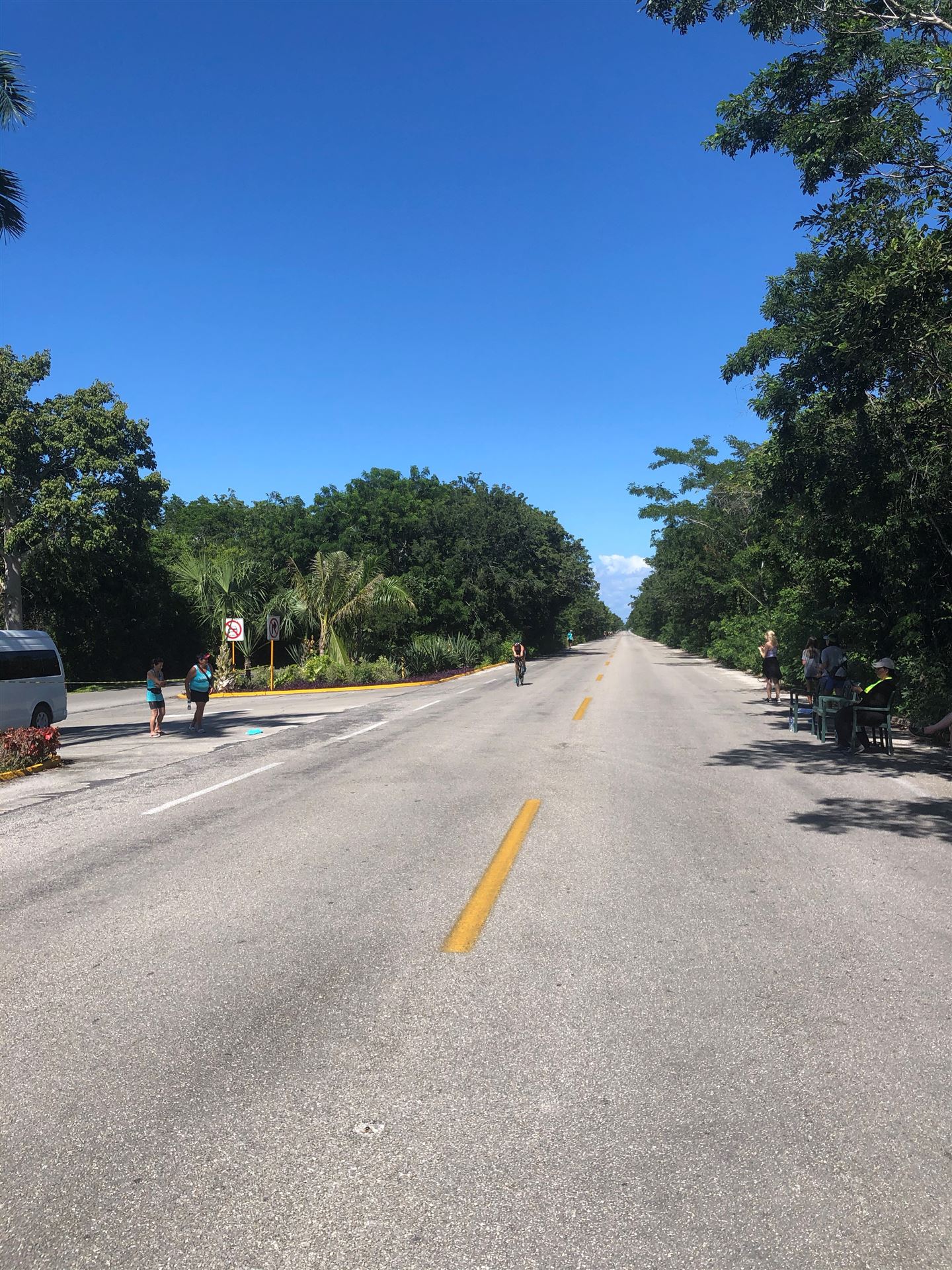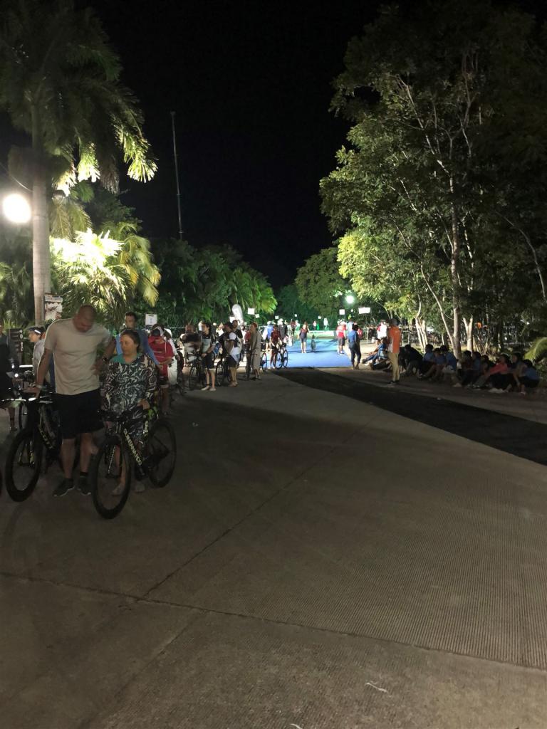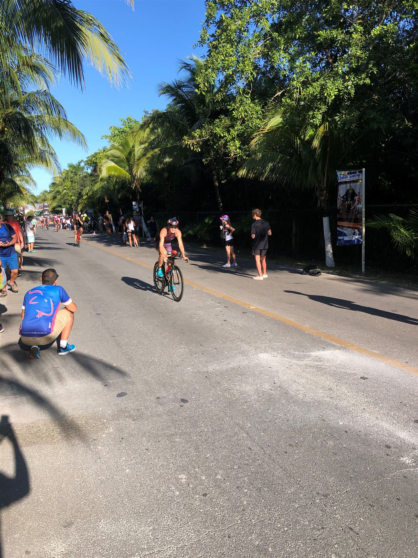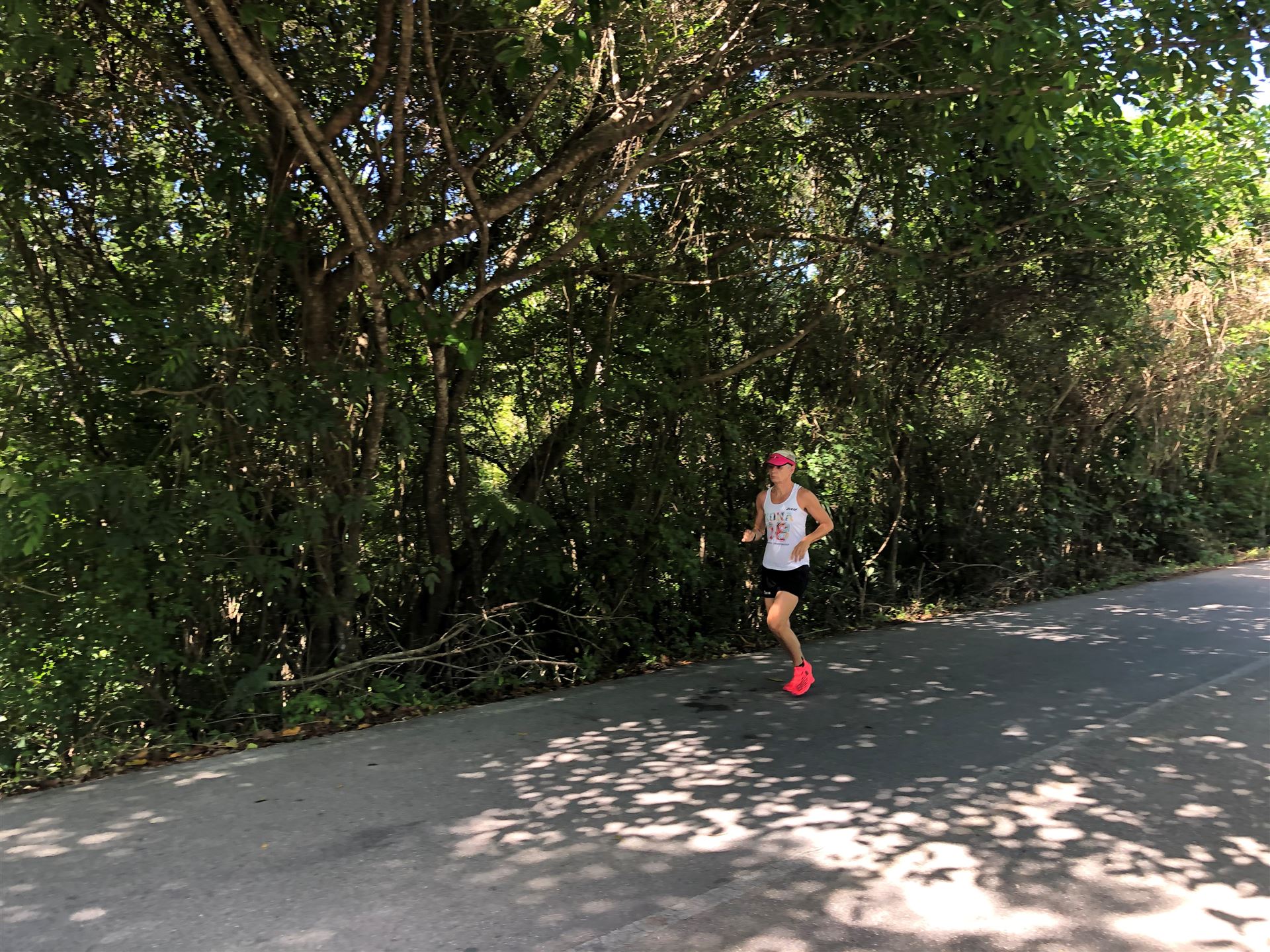 Um kurz vor 7:00 Uhr ist die Nacht vorbei. Da es relativ früh dunkel wird, steht man auch entsprechend früh auf. Nach dem Frühstück geht es mit dem Rad los. Einmal die Wettkampfstrecke abfahren, sprich einmal um die Insel. Inzwischen sind einige Athleten unterwegs. Es gibt einen tollen Radweg, der fast komplett parallel zur Straße geht. Es gibt kaum Verkehr, der Wind ist okay, die Wettkampfstrecke ohne Überraschungen. Unterwegs gibt es sogar Schilder mit dem Hinweis Athleten im Training. Eine Runde sind circa 63 Kilometer, fast alles mit Radweg. Nur das Stück durch die Stadt ist etwas blöd, der Rest jedoch perfekt. Im Anschluss an das Rad fahren stehen noch 30 Minuten lockere Grundlage Laufen auf dem Plan. Danach liegen wir etwas im Schatten am Pool. Inzwischen sind noch einige Athleten im Club angekommen. Zum Abendessen gibt es heute mal Buffet, danach noch etwas chillen und dann ab ins Bett.