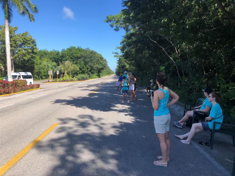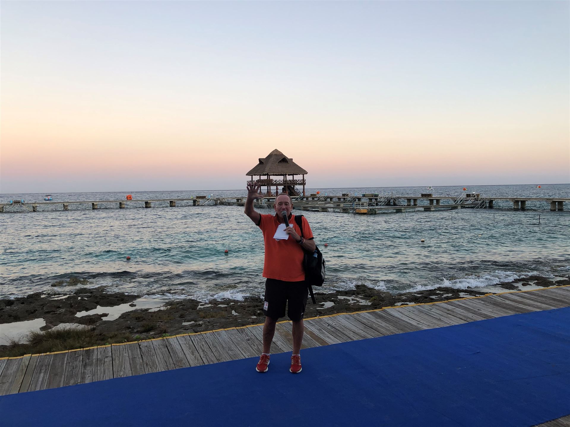 Man kann nachts relativ gut schlafen, die Temperaturen sind angenehm. Wir sind heute früh auf. Heute steht die erste Radeinheit auf dem Plan. Wir fahren einen Teil der Wettkampfstrecke ab. Es ist sehr windig, da muss man stellenweise aufpassen. Nach ein paar Kilometern hat man sich daran gewöhnt. Unterwegs trifft man einige Athleten. Direkt am Meer ist der Wind ganz schön arg. Die Landschaft ist toll, alles grün. Sehr wenig Autoverkehr. Nach dem Rad gibt es noch einen Koppellauf, inzwischen ist es gut warm. Das Meer ist heute auch sehr wellig und aufgewühlt. Es hängt die rote Fahne. Zum Mittagessen sitzen wir mit Blick aufs Meer im Beachrestaurant. Das ist Urlaub. Am Abend probieren wir die internationale Küche in einem weiteren Spezialitätenrestaurant aus. Tolles Essen, super Ambiente und ganz tolle Bedienung. Nach einem kleinen Absacker geht es Richtung Zimmer bzw. Bett. Ach übrigens, hier gibt es ganz viele Nasenbären, sehr zutraulich. Man muss aufpassen, die kommen ins Zimmer.