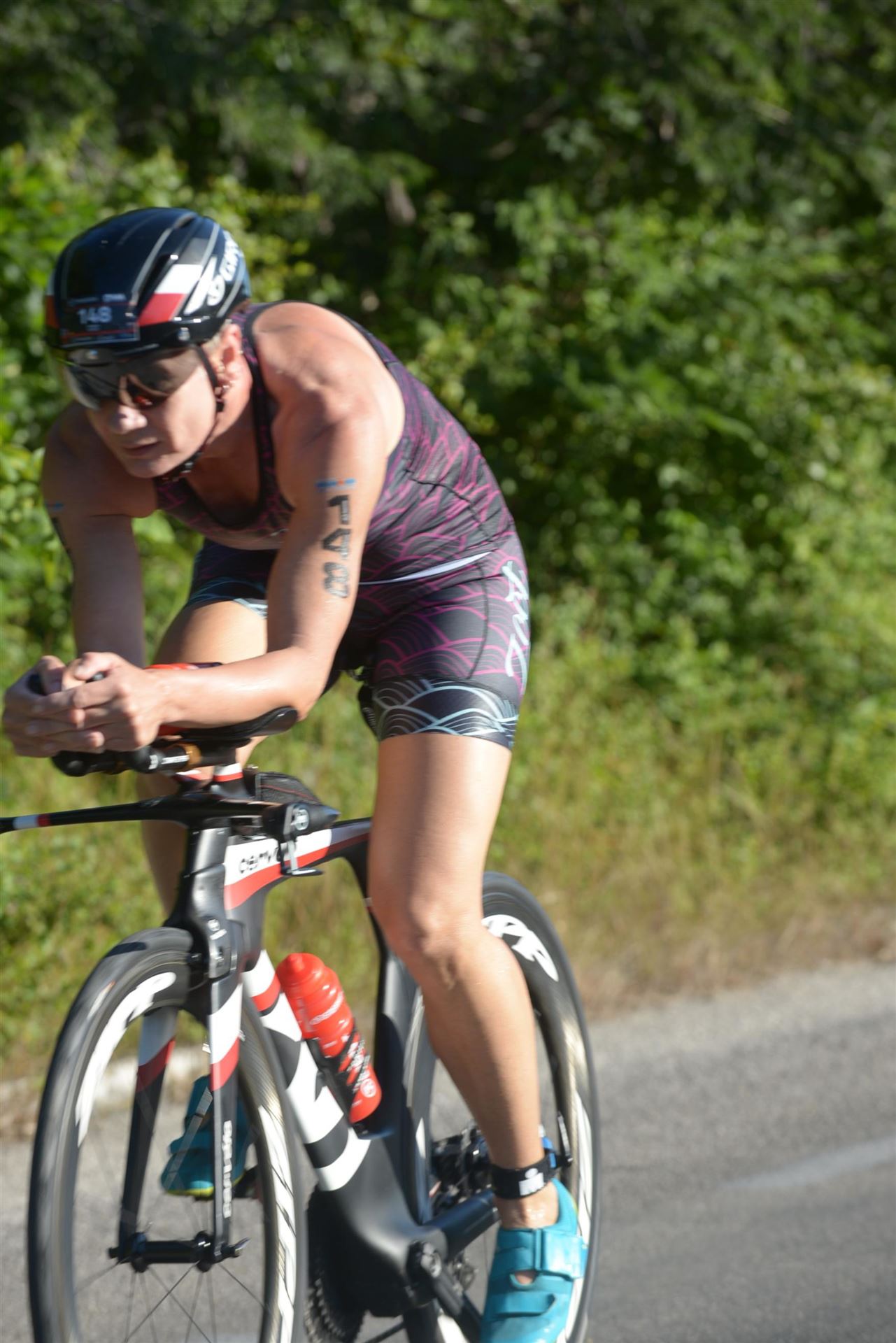 Mein Magen rebelliert, ich bin aber froh, dass ich das Schwimmen gut hinter mich gebracht habe. Raus aus den Schwimmsachen und rein in die Radsachen.