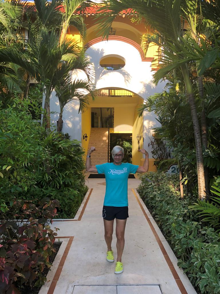 Um 7:00 Uhr war die Nacht vorbei. Es ist bereits hell und sehr warm. An das Klima muss man sich erst noch gewöhnen. Zunächst müssen wir uns auf dem Gelände orientieren. Es ist alles sehr weitläufig und sieht gleich aus. Die verschiedenen Pools sowie das Meer haben wir gleich entdeckt. Danach geht es zum Frühstück. Es ist angenehm, nicht zu voll. Das Buffet ist reichlich, für jeden Geschmack etwas dabei. Danach werden die Räder aufgebaut. Werner ist sehr geübt, das geht relativ schnell. Am Nachmittag steht noch 40 Minuten Laufen dem Plan. Es gibt direkt am Hotel einen sehr gut ausgebauten Radweg, da kann Werner mich mit dem Rad begleiten. Für den Abend haben wir uns einen Platz im mexikanischen Spezialitätenrestaurant reserviert. Das Essen ist sehr lecker. Danach noch etwas relaxen, wir fallen relativ früh ins Bett.