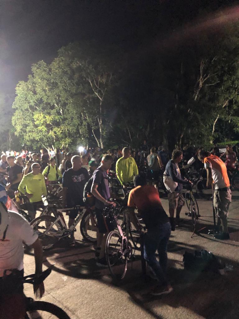 Um 4:30 Uhr gibt es bereits Frühstück im Hotel. Um diese Uhrzeit kann ich kaum etwas essen, es ist einfach zu früh. Nach dem alles für den anstehenden Wettkampf gerichtet ist fahren wir mit Hannes zur Wechselzone T1. Man erledigt routiniert die einzelnen Schritte. Rad überprüfen, Luft aufpumpen, Getränke und Verpflegung richten. Dies ist bereits meine 11te Langdistanz. Nachdem alles fertig ist verabschiede ich mich von Werner und es geht mit dem Bus zum Schwimmstart. Es ist alles super organisiert. Die Leute sind nett und relativ entspannt. Es herrscht eine gute Stimmung am Start. Die Wartezeit überbrücke ich zusammen mit einem Brasilianer. Wir halten etwas Smalltalk, natürlich über das Thema Triathlon und Wettkämpfe. Das entspannt und die Zeit geht schneller vorbei.