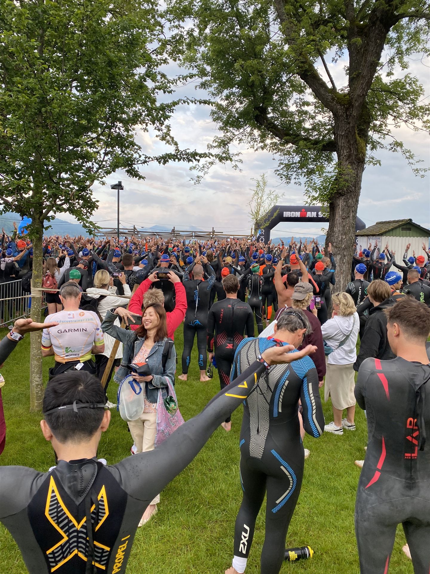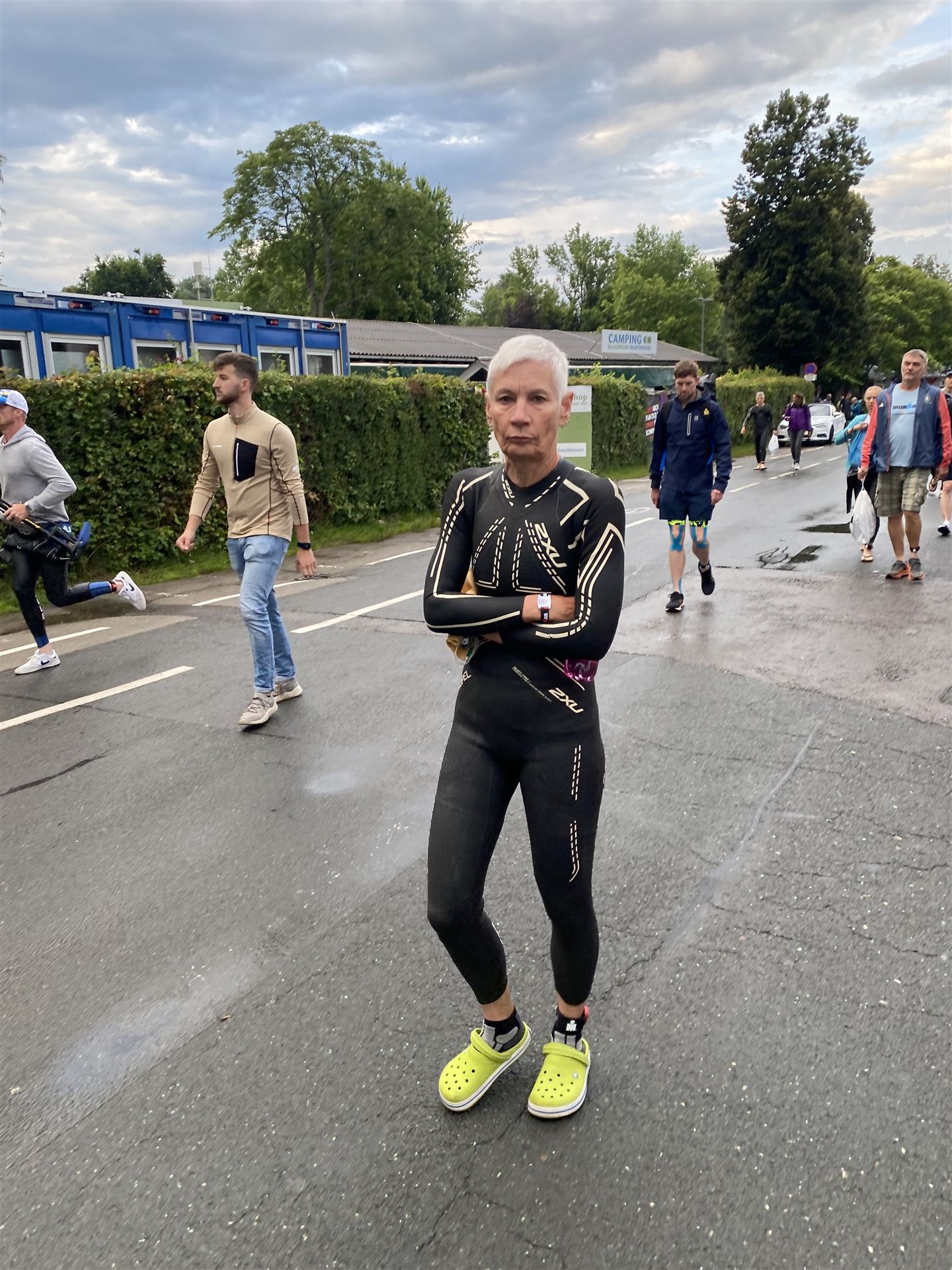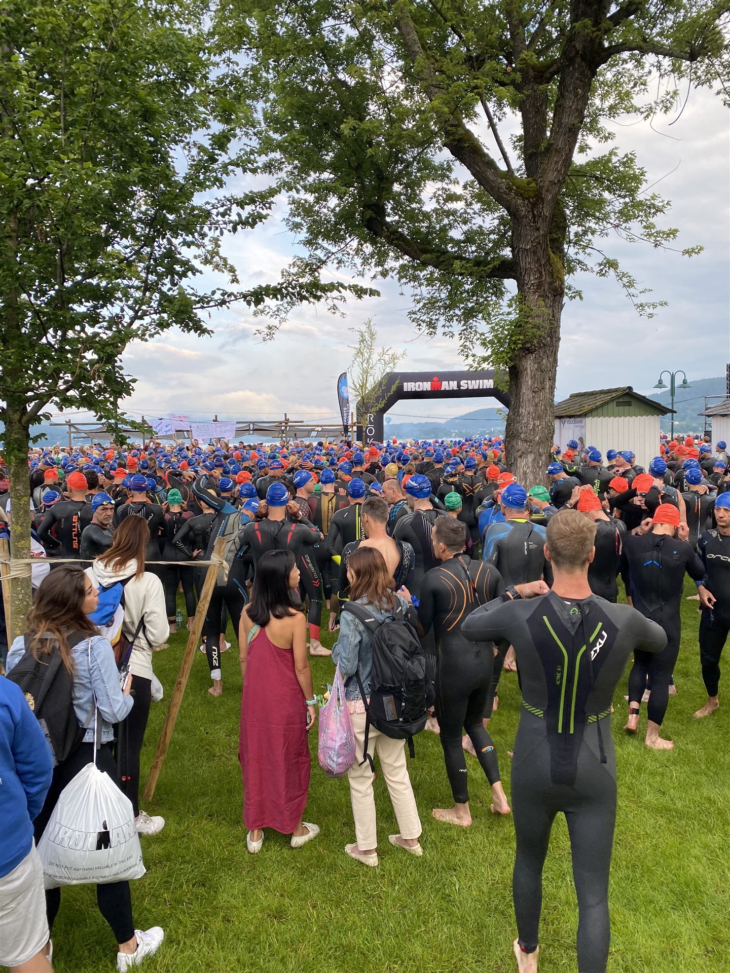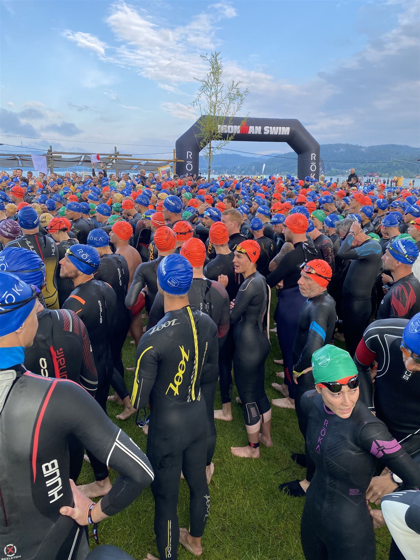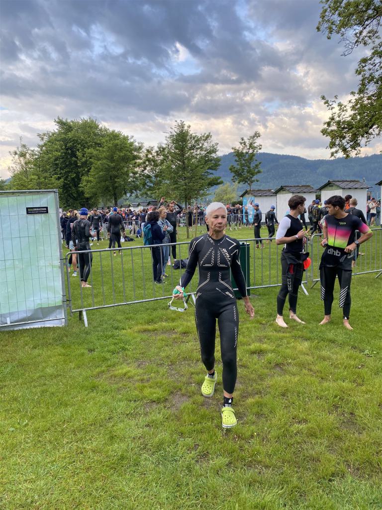 Normalerweise mache ich gerne vor der ersten Langdistanz eine Mitteldistanz um meine Form zu prüfen. In diesem Fall stand am 16.06.2024 direkt eine Langdistanz in Österreich an. Der IM in Klagenfurt ist ein sehr schöner Wettkampf, an dem ich bereits mehrmals teilgenommen habe. Die Wettervorhersage für den Wettkampftag war durchwachsen. Ich mag gerne warme Temperaturen, je wärmer desto besser. In diesem Fall lag die Vorhersage bei circa 22-23 Grad Lufttemperatur mit etwas Regen. Die Wassertemperatur lag ebenfalls bei knapp 20 Grad, keine Bedingungen, die ich gerne mag. Aber egal, das Leben ist kein Wunschkonzert und das Wetter kann man nicht beeinflussen. Die Nacht vor dem Wettkampf ist immer etwas kurz, man schläft auch etwas unruhig. Bereits um 3:30 Uhr war ich wach und bin auch direkt aufgestanden. Für den Wettkampf habe ich bereits alles gerichtet. Die Wechselzone öffnet am Wettkampftag um 5:00 Uhr, ich bin pünktlich da und pumpe noch einmal meine Reifen auf und fülle Getränke und Gel auf. Während der ganzen Zeit regnet es, es kann nur noch besser werden. Erstaunlicherweise nimmt man solche Dinge am Wettkampftag einfach hin, man hat keinen Einfluss.
